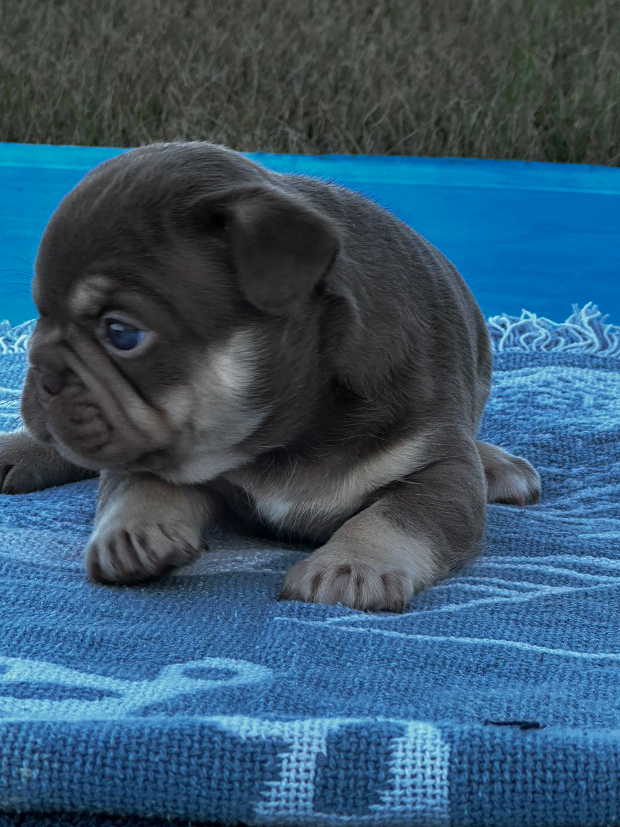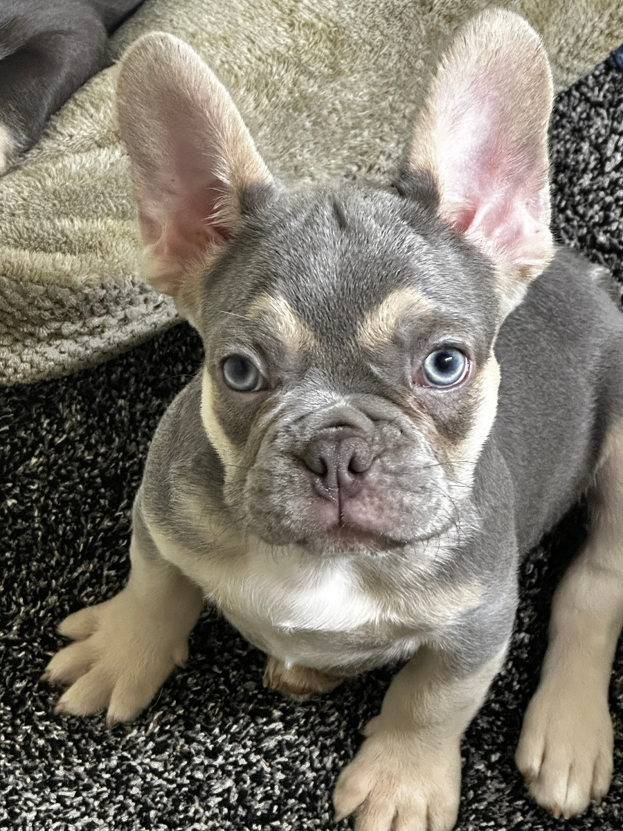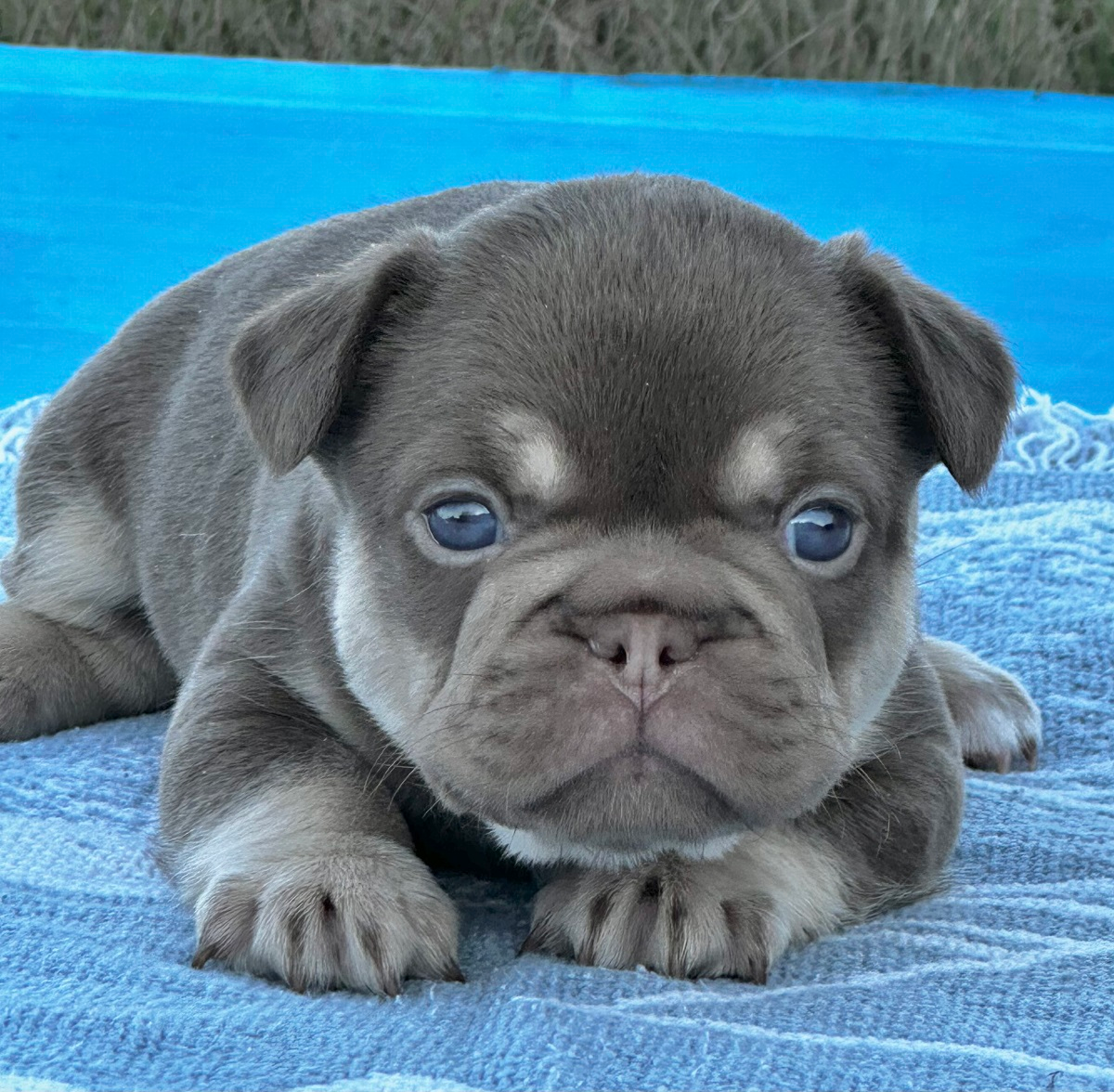 This beautiful girl is Rojo tan, new shade, carries blue and fluffy.